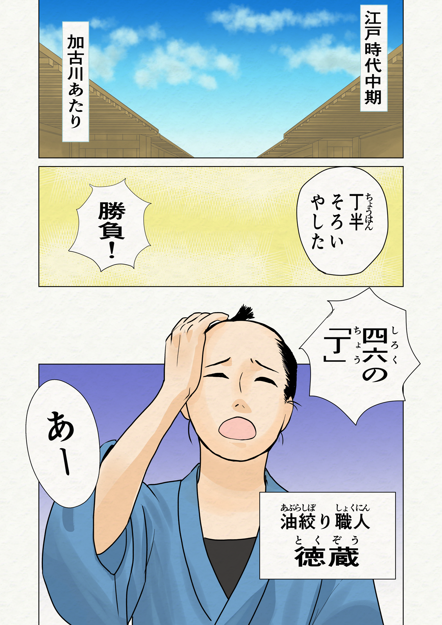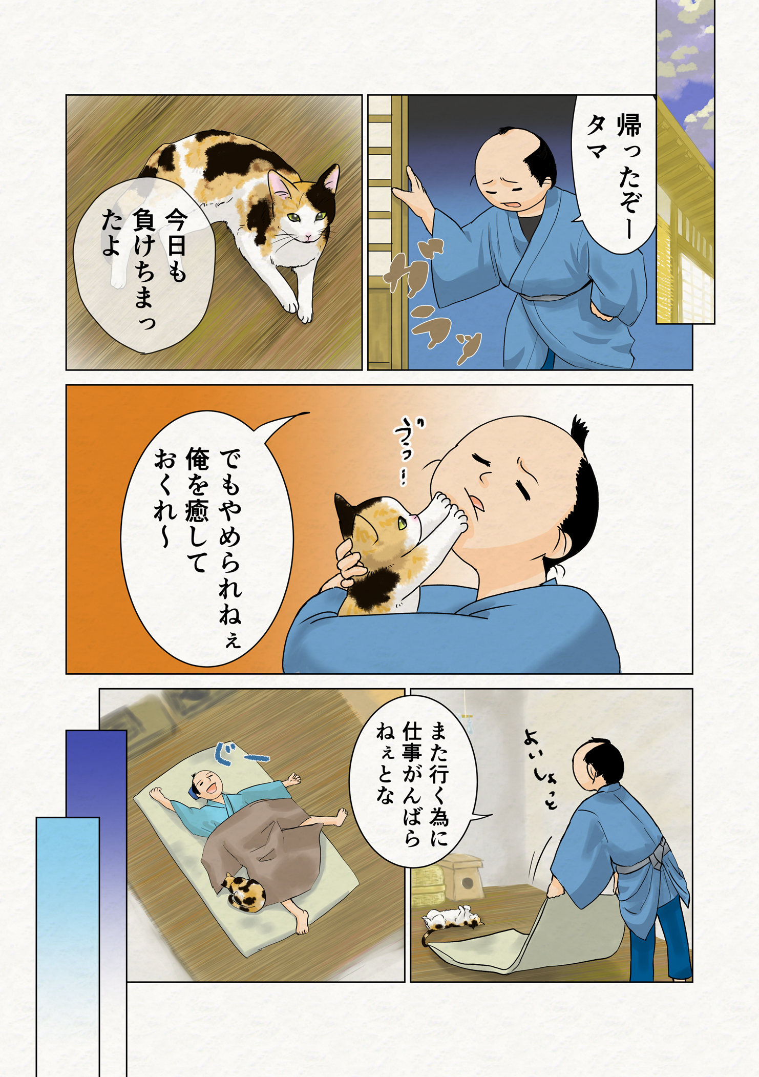 江戸時代、油職人・徳蔵とその愛猫「タマ」。